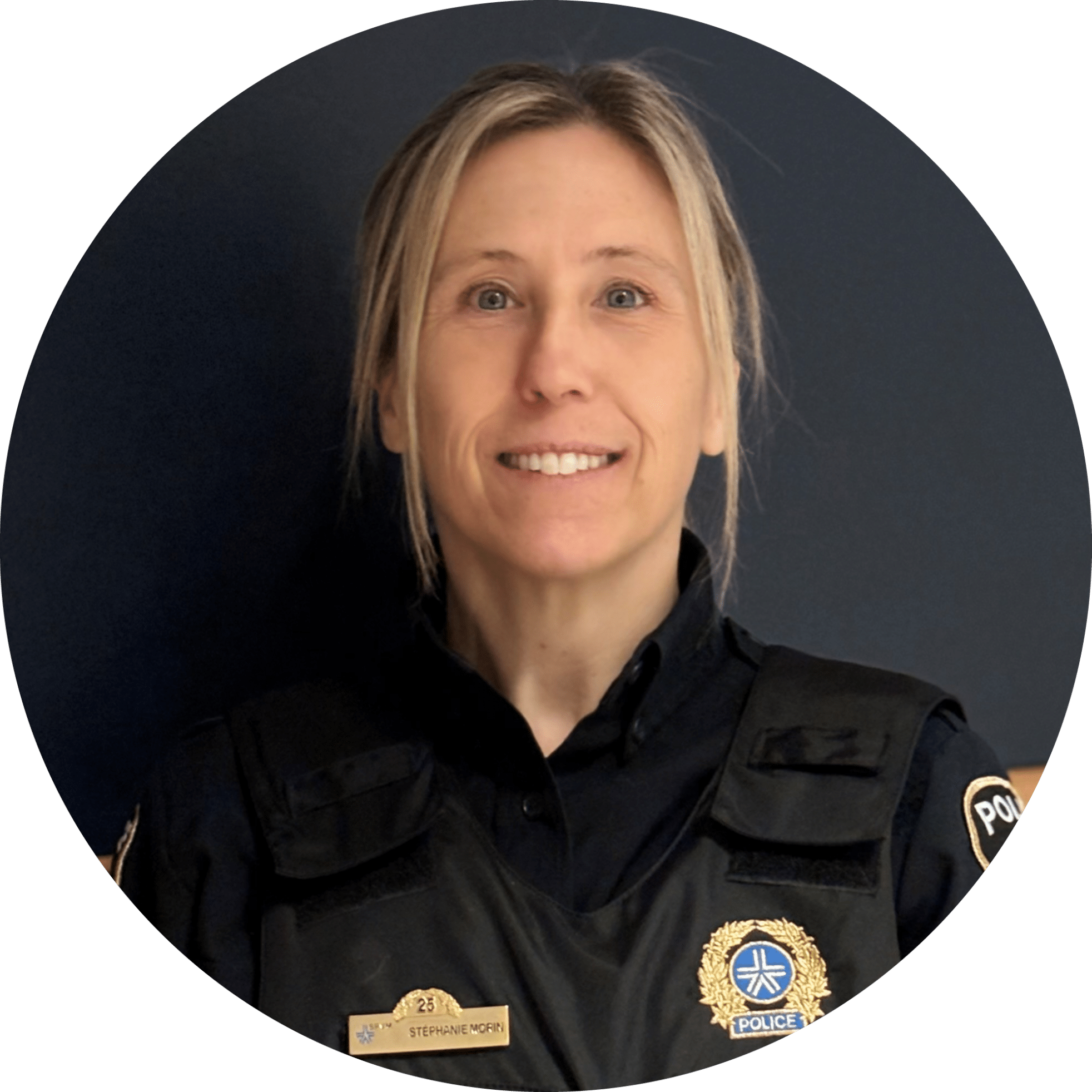 Stéphanie Morin est policière depuis 2000 et agente sociocommunautaire depuis 2011. Elle a exercé la majeure partie de sa carrière dans L’Ouest-de-l’Île de Montréal, notamment pendant 17 ans à Lachine. Tout au long de son parcours, elle a développé une solide expertise en intervention auprès des jeunes en milieu scolaire, des familles et des aînés, particulièrement en matière de violence familiale, de comportements à risque et de maltraitance.