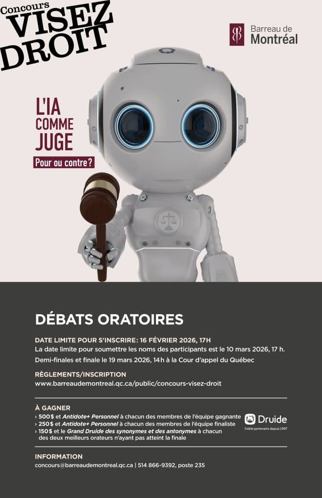 Les demi-finales et la finale auront lieu le 19 mars 2026, à 14 h, à la Cour d’appel du Québec